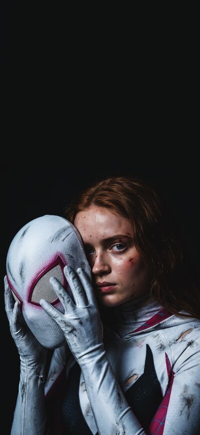 Get this stunning 4K wallpaper of Miles and Gwen Stacy's character half-face masks for your iPhone! This wallpaper can be used as matching wallpaper for you and your friend.