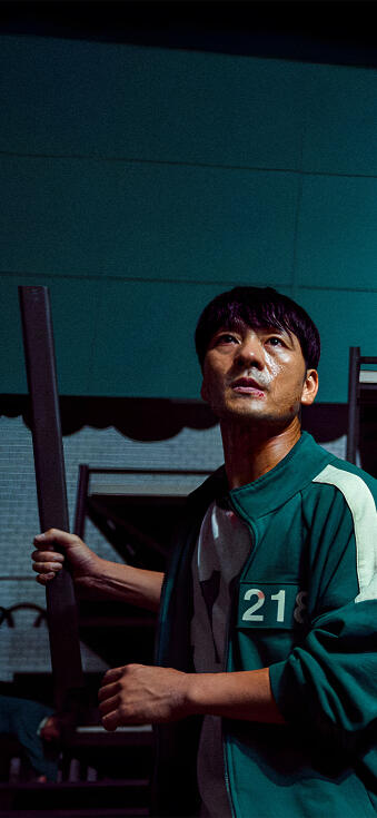 Squid Game Sang-Woo player 218 with metal stick wallpaper HD
