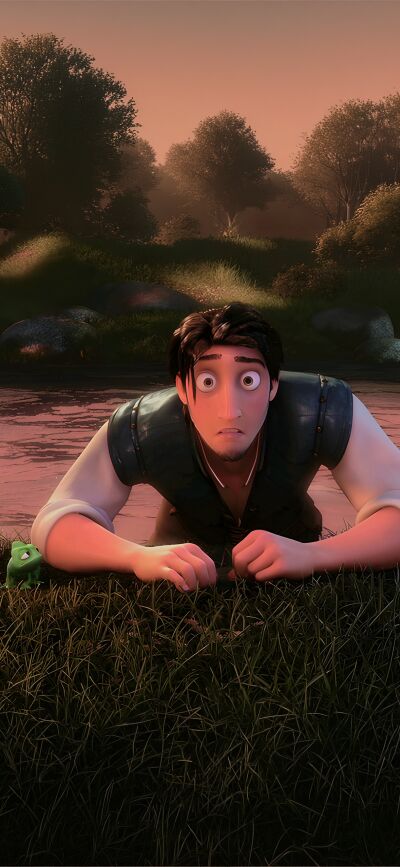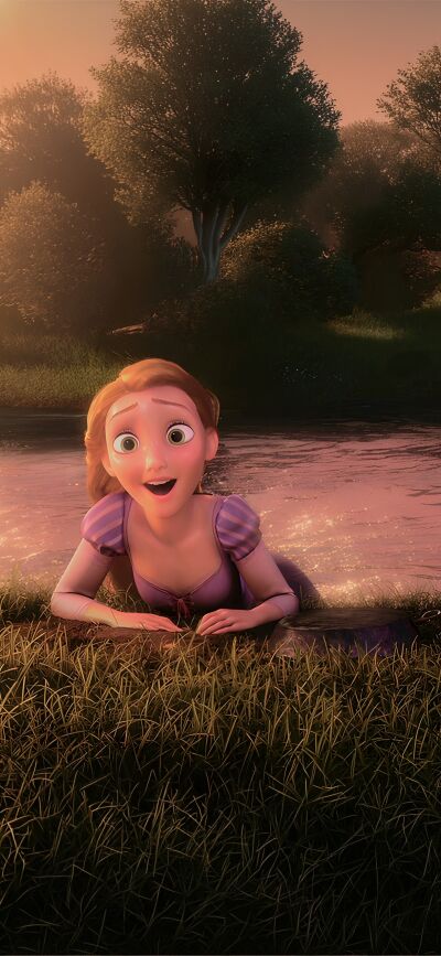 Enjoy this lovely matching Tangled wallpaper in 4K for your iPhone, featuring Rapunzel and Flynn in the grass by the river. This wallpaper makes your phones have a continuous image that makes the perfect matching set for you and your friend!