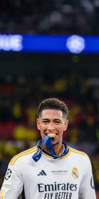 Jude Bellingham biting his gold medal wallpaper