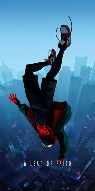 Spiderman jumping in casual attire with A Leap of Faith quote wallpaper in 4k