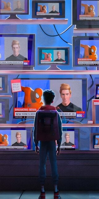 Spiderman Miles looking his variant on TV wallpaper in HD