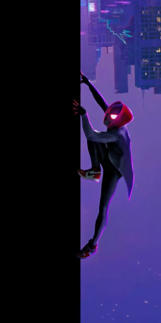Black Spiderman Miles Morales crawling on the wall wallpaper 4k