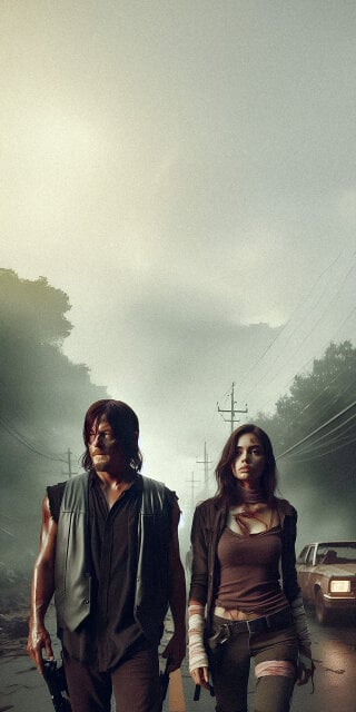 Daryl Dixon with a girl walking wallpaper